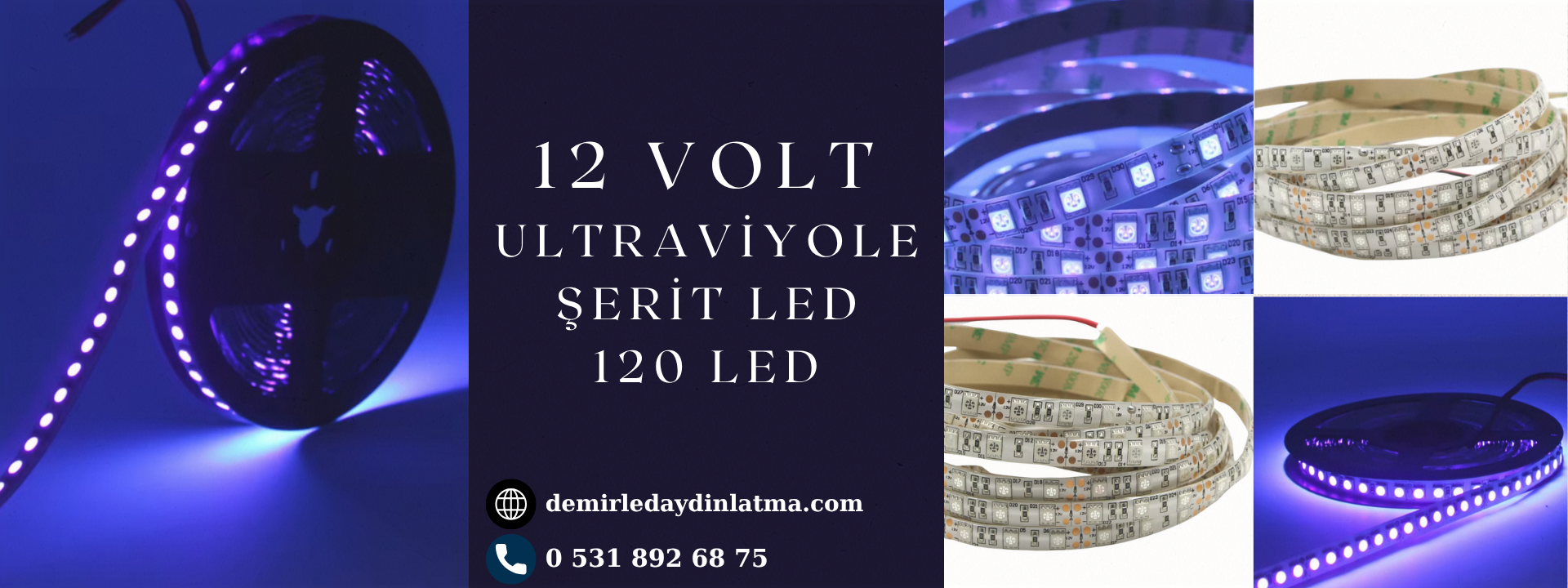 Ultraviyole 2835 Şerit Led 12V Uv Şerit Led Black Light 120 Ledli ( 5 Metre )